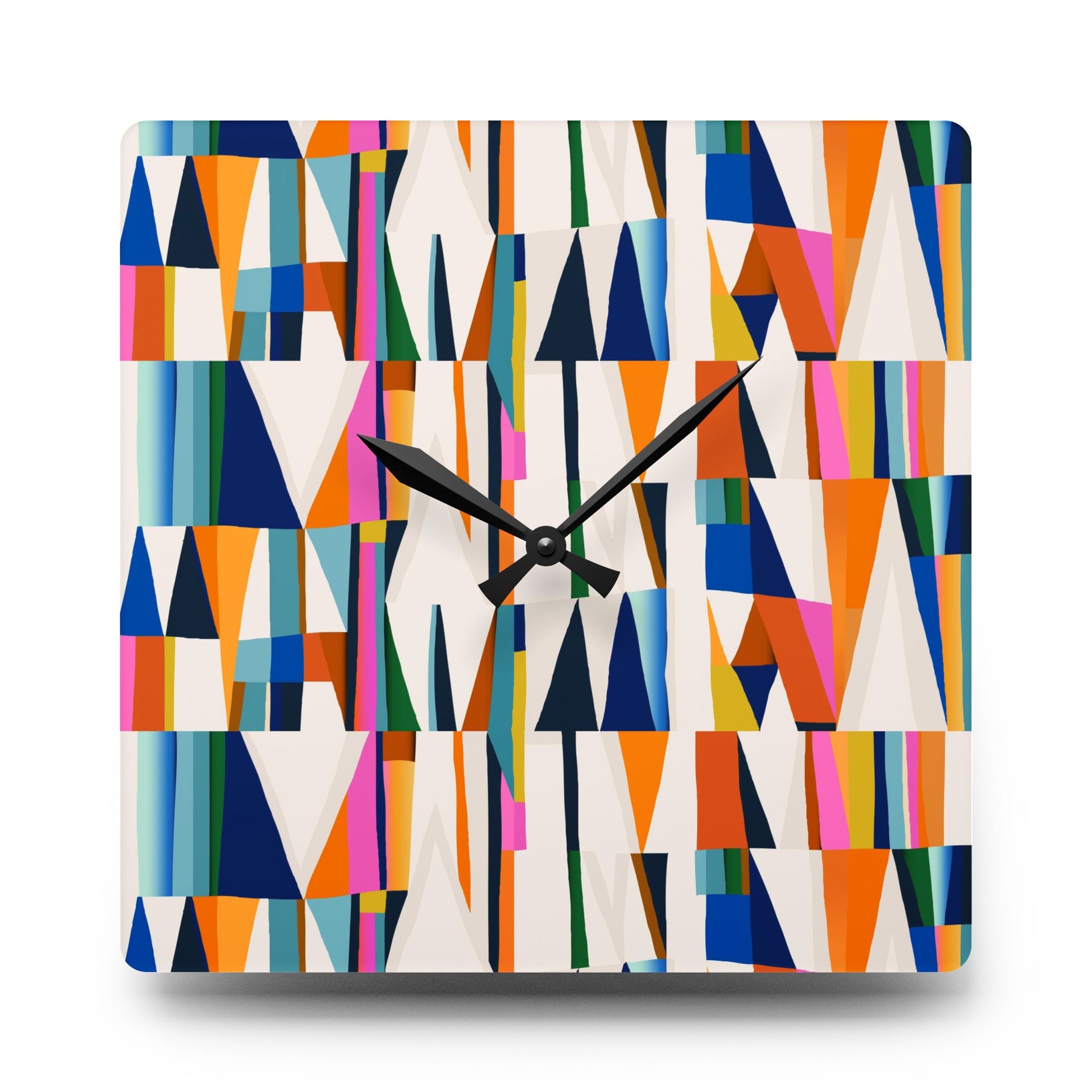 These clocks come in two shapes (round and square) and two sizes. Each clock has a keyhole at the back for easy hanging on a wall. They're made from an acrylic material that looks like glass but is more durable and sturdy.