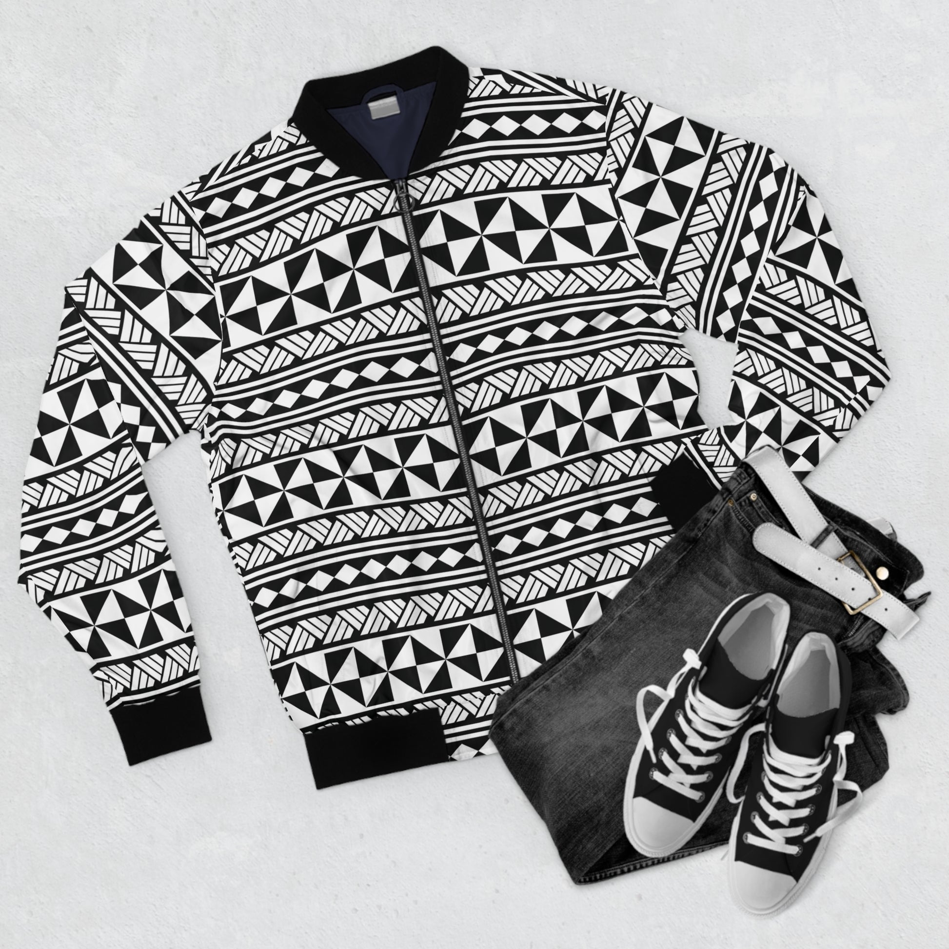 Looking fashionable has never been easier with this men's all-over print jacket with ribbed stand-up collar, elastic cuffs, and elasticized hem. Featuring the classic bomber jacket look, a durable zipper and two pouch pockets, this jacket is ready to take your everyday look a notch higher to reflect your unique personality and style.