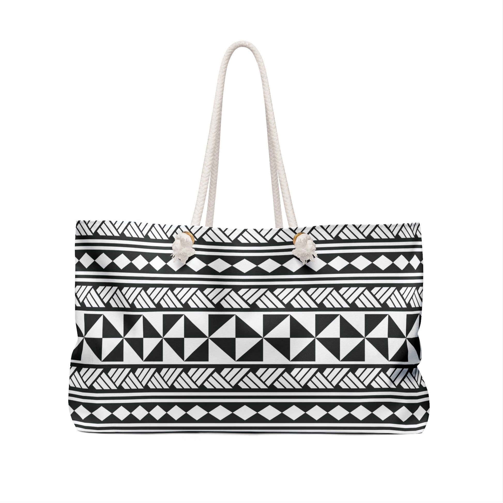 Our oversized Weekender Tote is perfect for your weekend at the beach or in town. The wide-mouthed, durable bag holds a generous amount of personal items and is easily held by its thick rope handles.